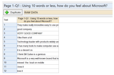 The result is a new numeric variable in your project where each respondent is given a negative or positive score based on their open-end response. You can use this variable in a variety of ways: