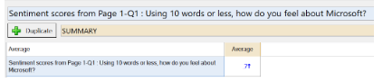 A sentiment score is generated for every respondent in the survey, and saved as a numeric variable. Q assigns a missing sentiment value for people without responses.